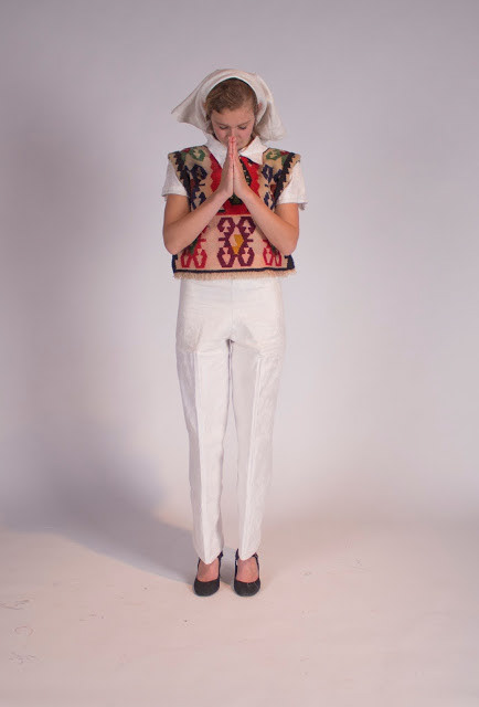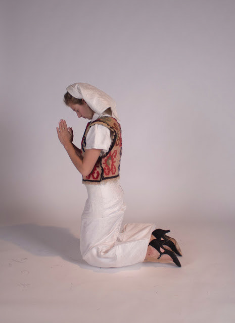 This show was a collection of 3 or 4 years work that was commentary on stereotypes that we see every day and perpetuate in our society. The way men and women in different time periods are depicted is very interesting to me. As I have studied art history I have found many characters that have been remembered in various ways. Most of these characters are female: women idealized, sexualized, distorted, restrained, or condemned. This show attempts to identify and play with these stereotypes in a way that reveals truths about the time period in which they are set. The order of the pieces is chronological, beginning with contemporary and ending with the medieval period. The show identifies five female stereotypes and one male stereotype. My goal is not to denounce or praise any character that I present but merely provide another perspective. Pieces modeled by: Brooke Mason Chaney (@brookie__babie ) and Dylan Barret-Smith Photos By: Emma Brown